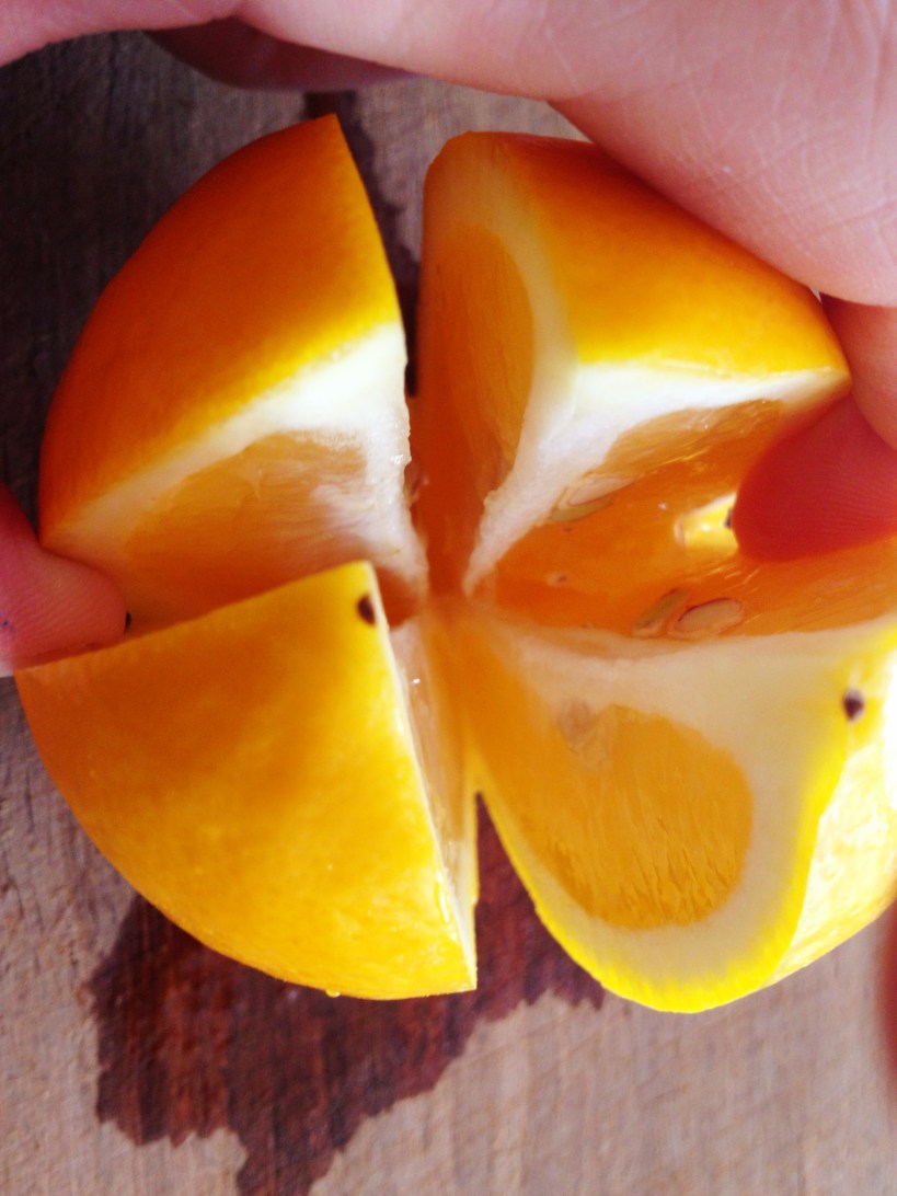Quarter your lemons but don’t cut too far. You want the lemon to stay in tact