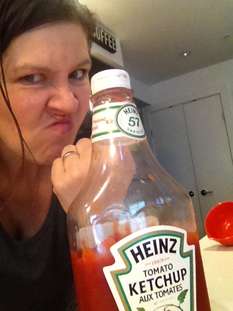 The reason why my mood is ironic is because well…as luck would have it, the lion freaking LOVES ketchup.  Shudder, Shudder, Shudder!!  Yup, despite my best efforts of concealing ketchup from him, he discovered it and loves it.  There have been times where I have had to have hubs step in after the lion has dipped his whole friggen hand in the stuff and no amount of baby wipes are going to take care of that.  I have try my best to maintain composure and step away from the crime scene.  Of course my kid loves my nemesis.  Le sigh.  Now because I can tolerate BBQ sauce, I often replace ketchup with BBQ sauce on the side of his plate and that seems to work and he equally likes that.  I have come to the conclusion that kids just like to dip things and I need to just accept that condiments will be a part of this household.