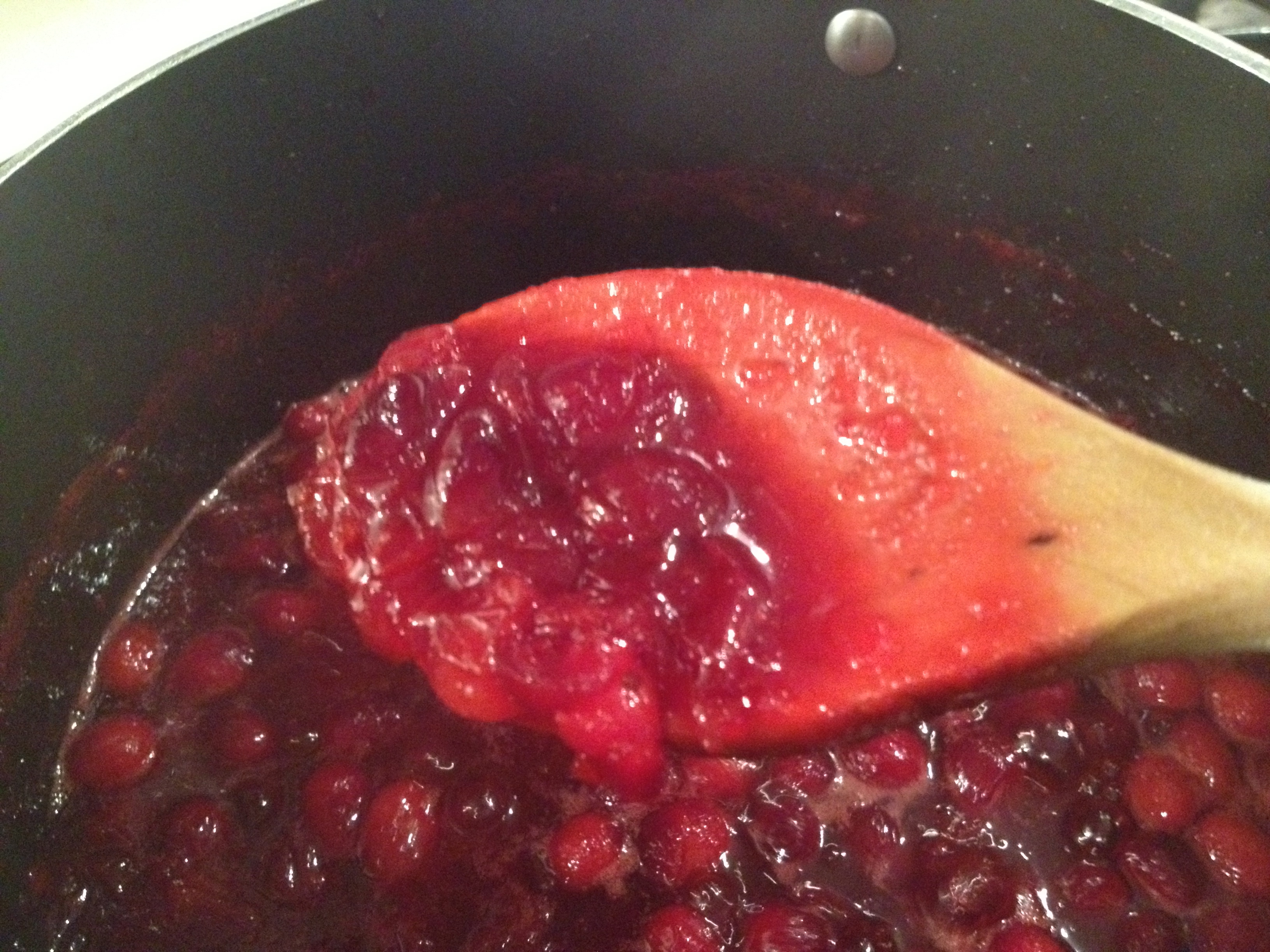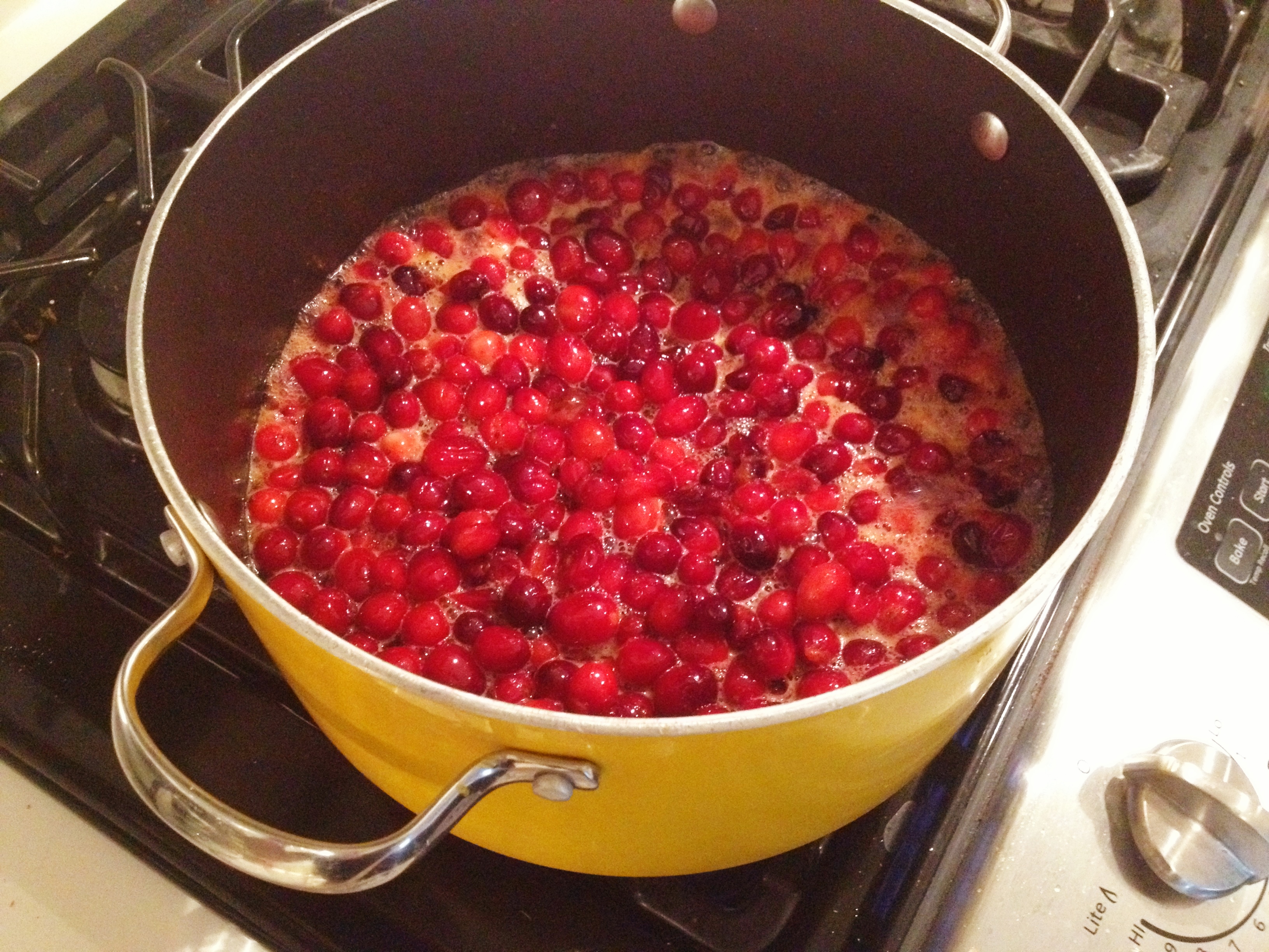 - Add Cranberries to the mixture and stir. After a few minutes you will start to hear them pop and the skins break.