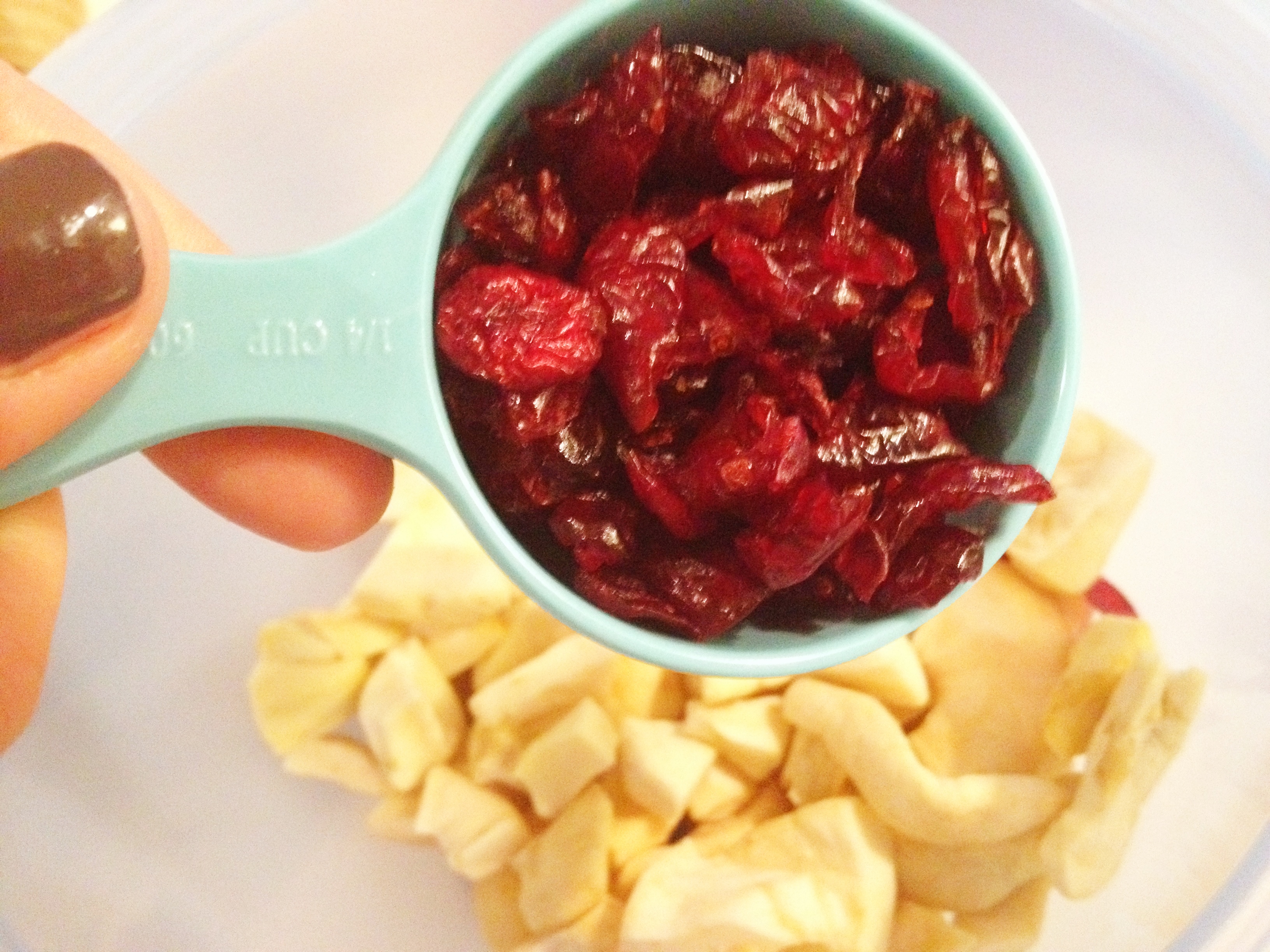 I decided to morph the goodness of apple pie with some cranberry goodness and create a delightful little lion bar (if you haven’t read my other lion bar posts…they are my take on the Lara Bar). I’m calling them: Cranberry Apple Pie Lion Bars.