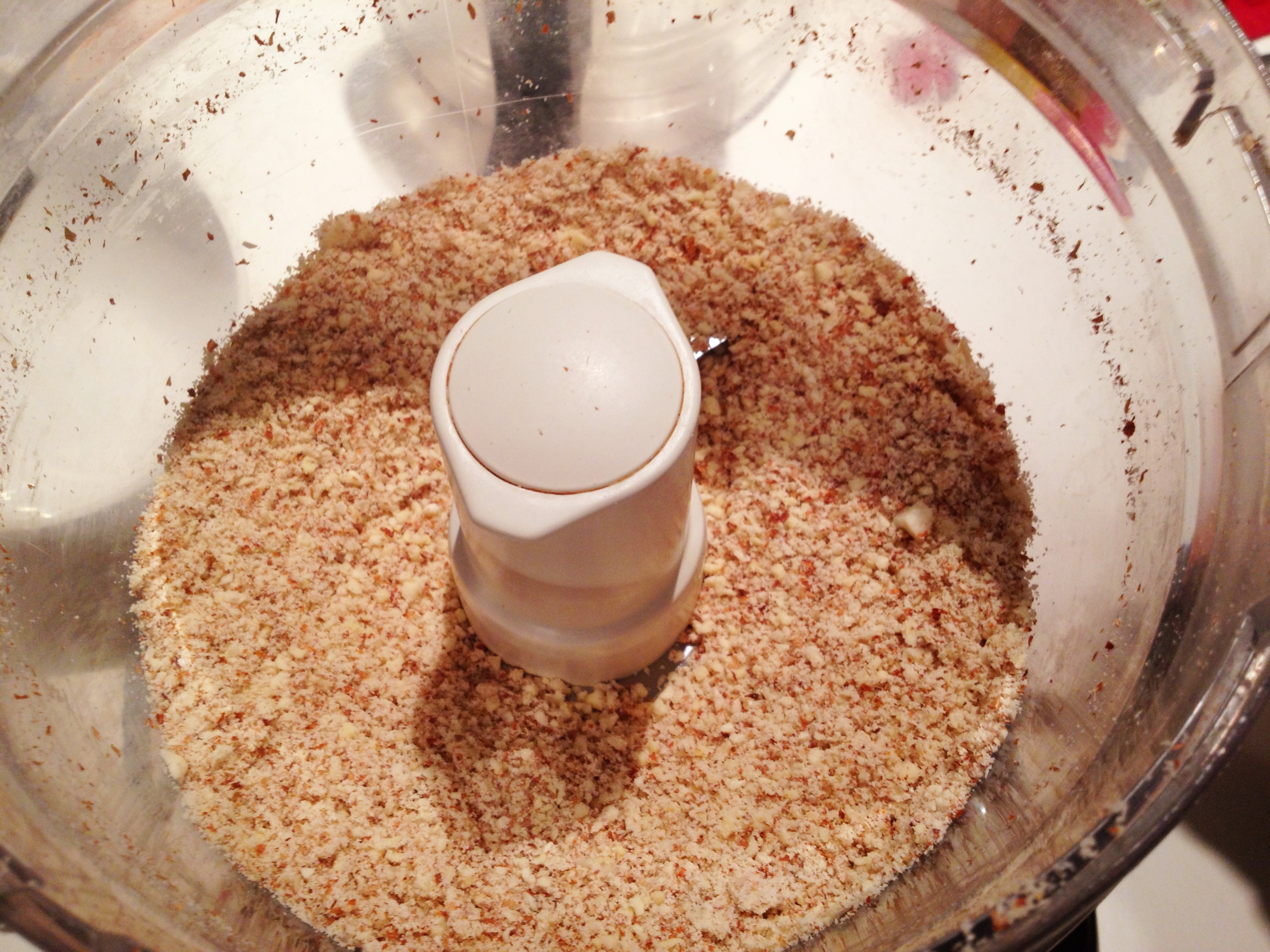 - Pulse the nuts in a food processor until they are the consistency of a course flour