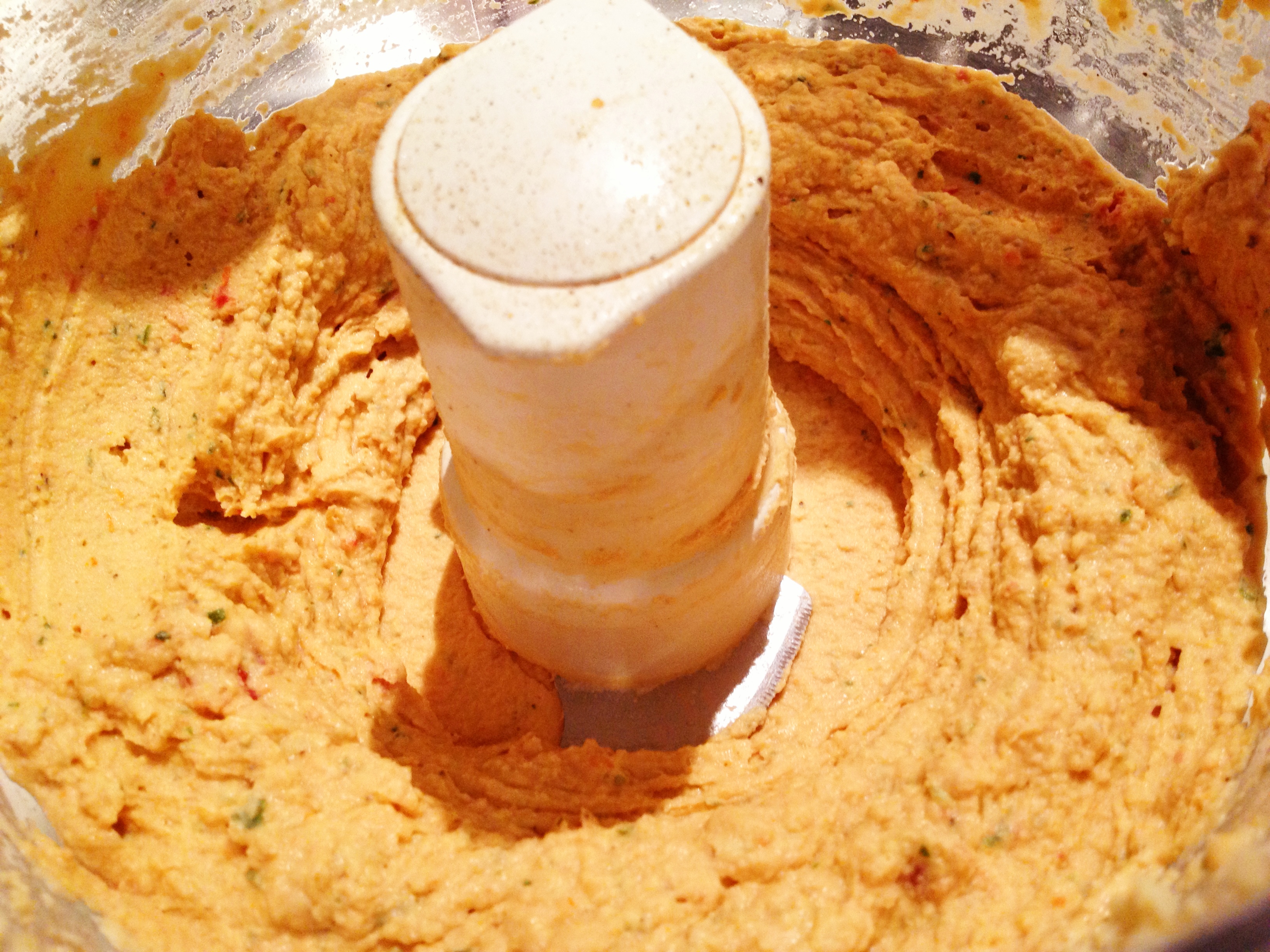 If the mixture is thick, add a bit of water (little bit at a time) to loosen it up a bit. For this recipe I ended up adding about 2 Tbsp total and it was perfect. Still thick but not crazy thick. I don’t like when hummus or dip is too thick and it ends up feeling like you are just eating mashed chickpeas. To me, it’s all about the dip potential…you gotta be able to dip your cracker or veggie in to the mixture and have the dip stick to it but not have your dipping mechanism get stuck in the bowl or break while trying to dip. It’s all about the consistency baby!!