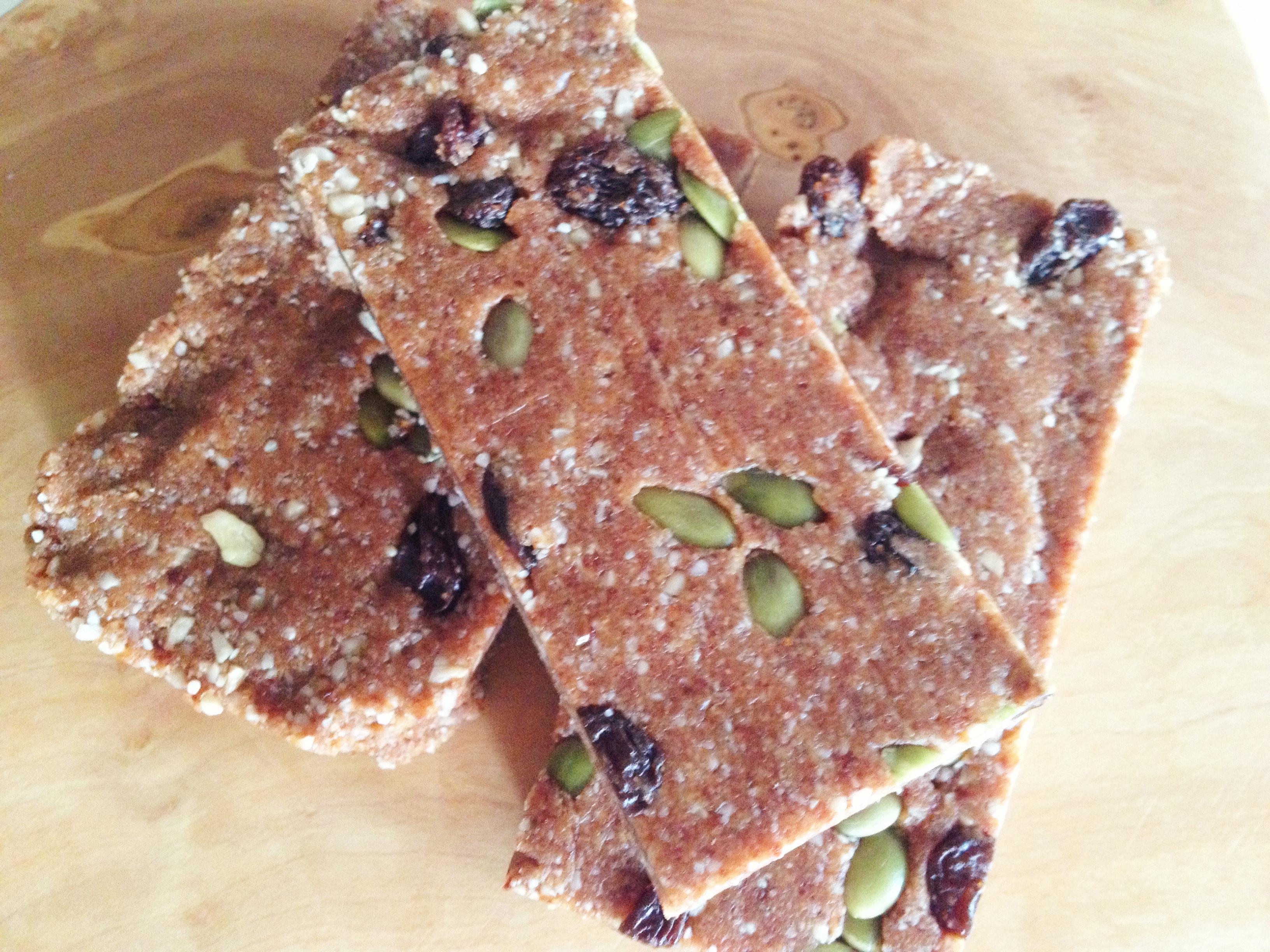 - Add everything else except the pumpkin seeds and a small amount of raisins. The mixture will be done when it starts to jump around in the food processor