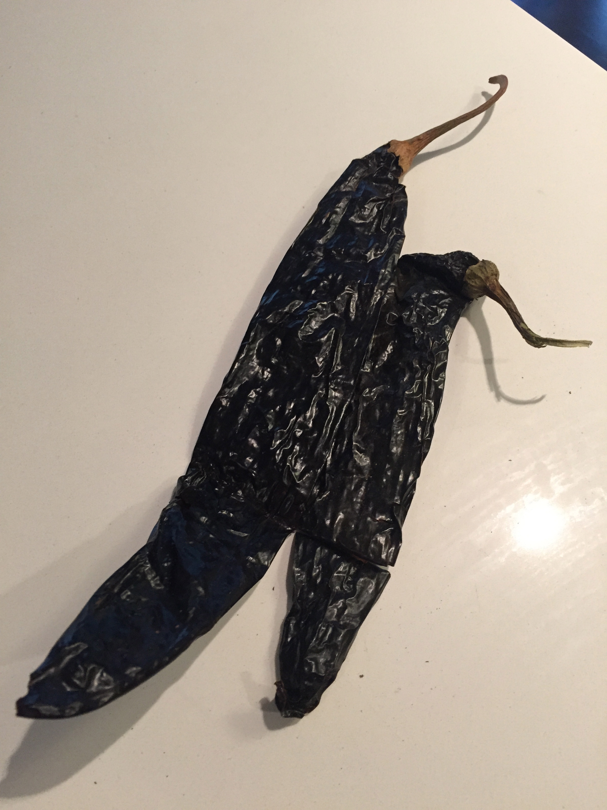 Now i’m going to spice it up a bit and get fierce as hell when I pull out some dried pasilla (pronounced pah-see-ya) peppers I had in my pantry. Why not right?? What is a pasilla pepper…it’s pretty much a Chilaca pepper in fresh form and when dried is referred to as a pasilla pepper. It is mild to medium hot and very rich in flavour. It’s often used in a variety of sauces.