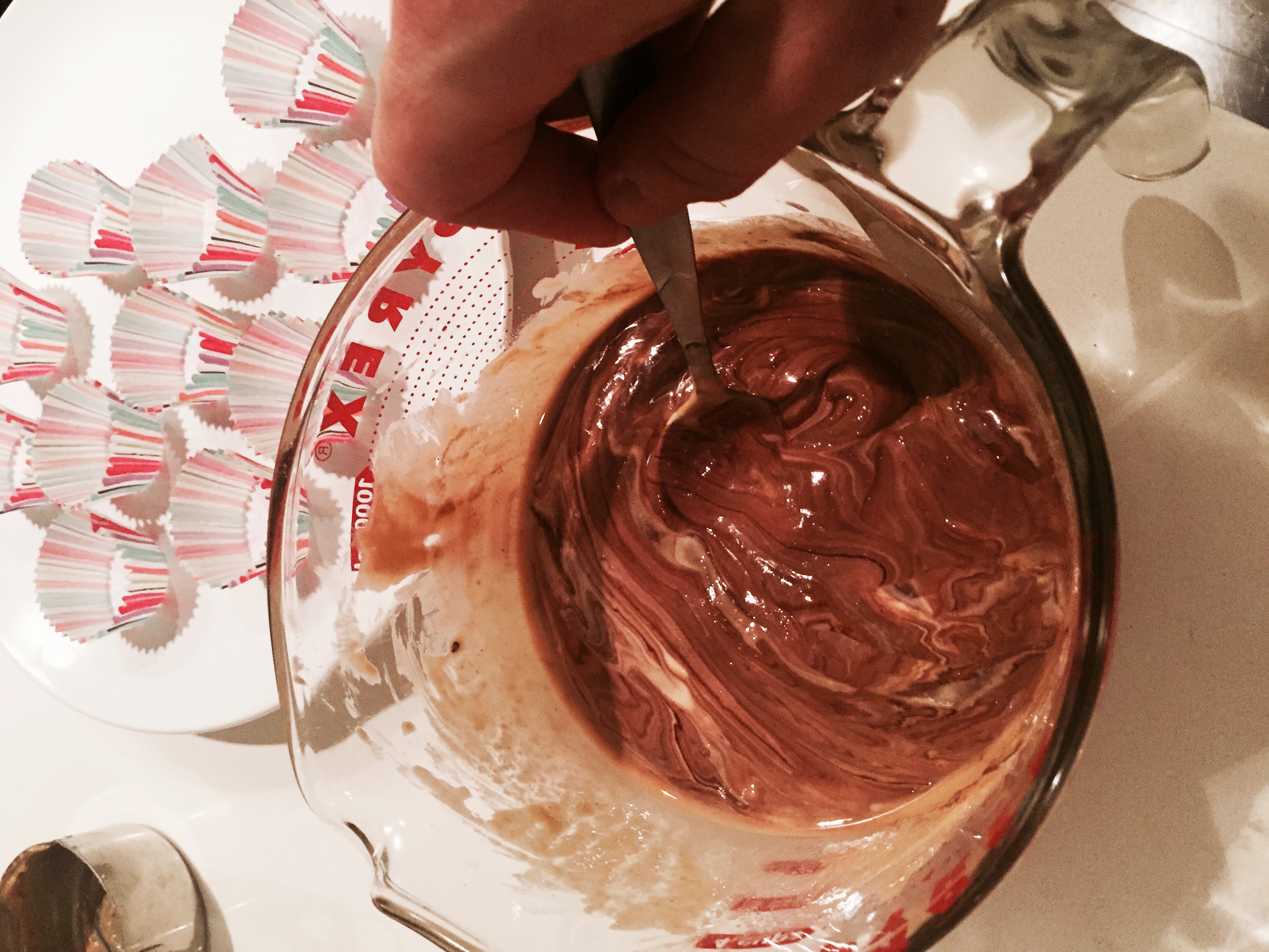 Get ready to pour this molten deliciousness in to the cupcake liners