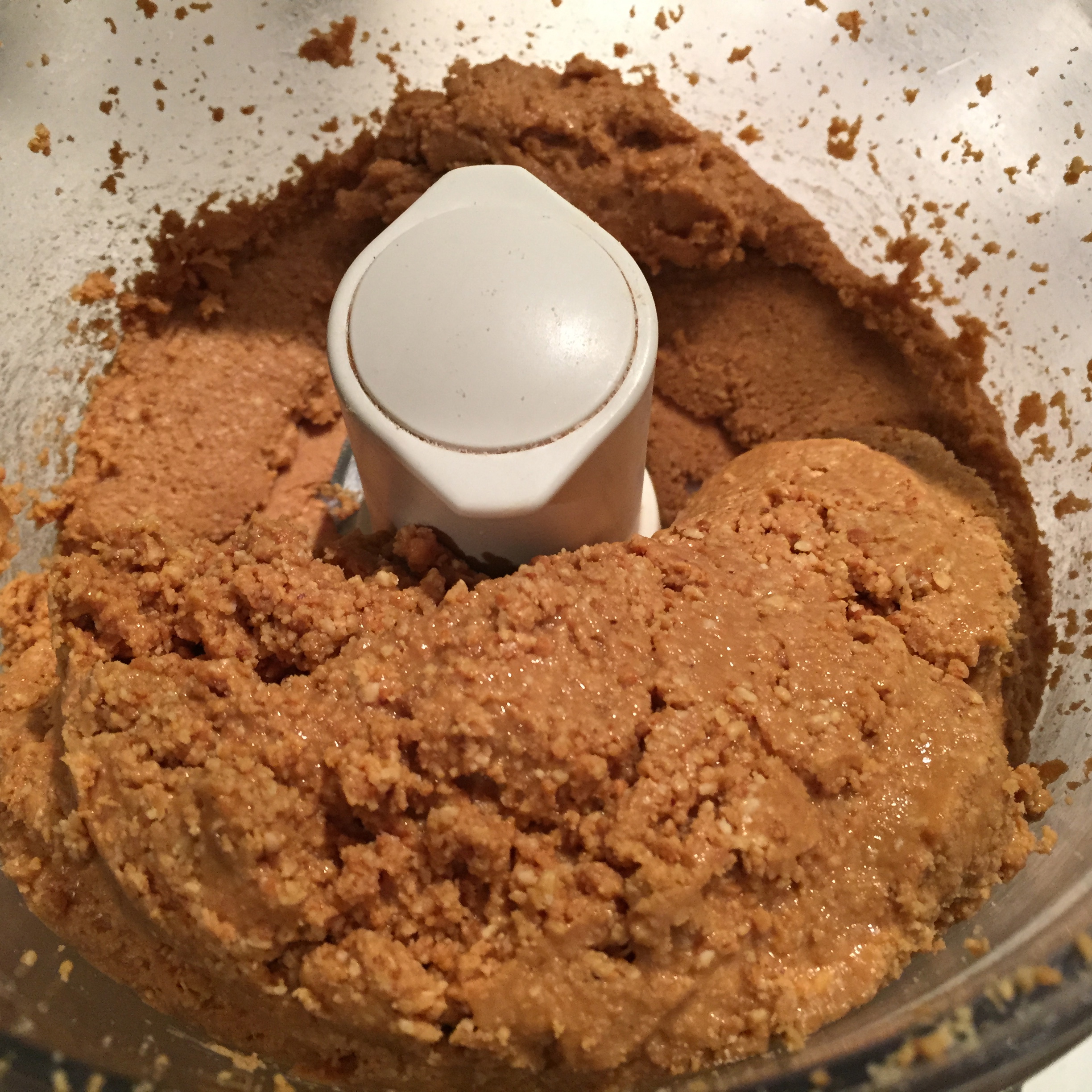 Then it goes through a phase where it is starting to look like a big dry clump of peanuts and you may be doubting your skills. Fear not friends…it will work out, it just takes time and a bit of scraping down the sides of your food processor.
