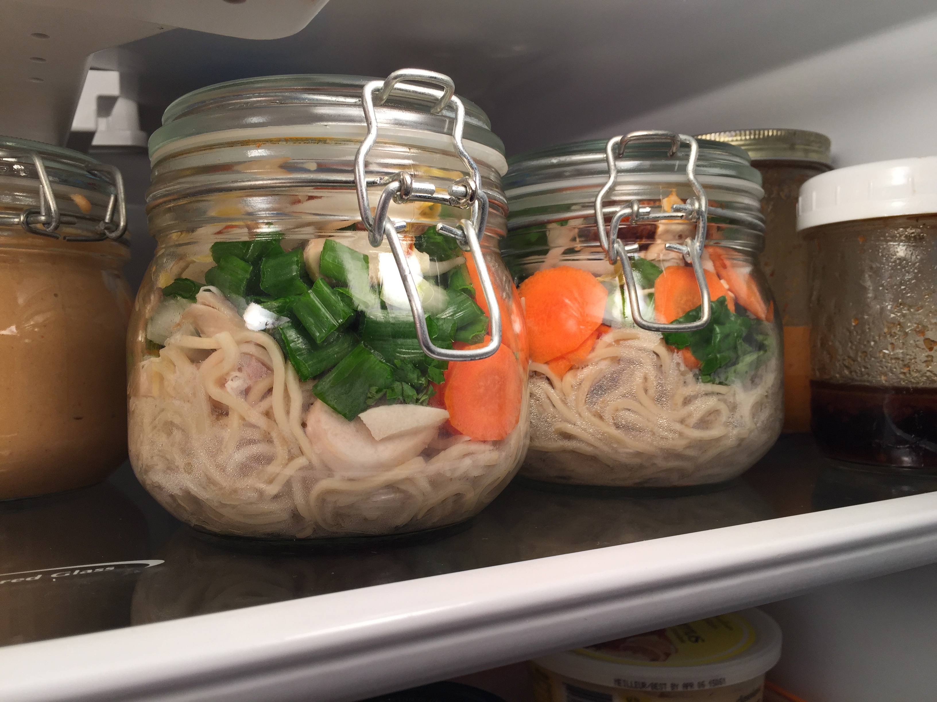 Push the noodles down to the bottom of the container (this way you can fit more good stuff in there)