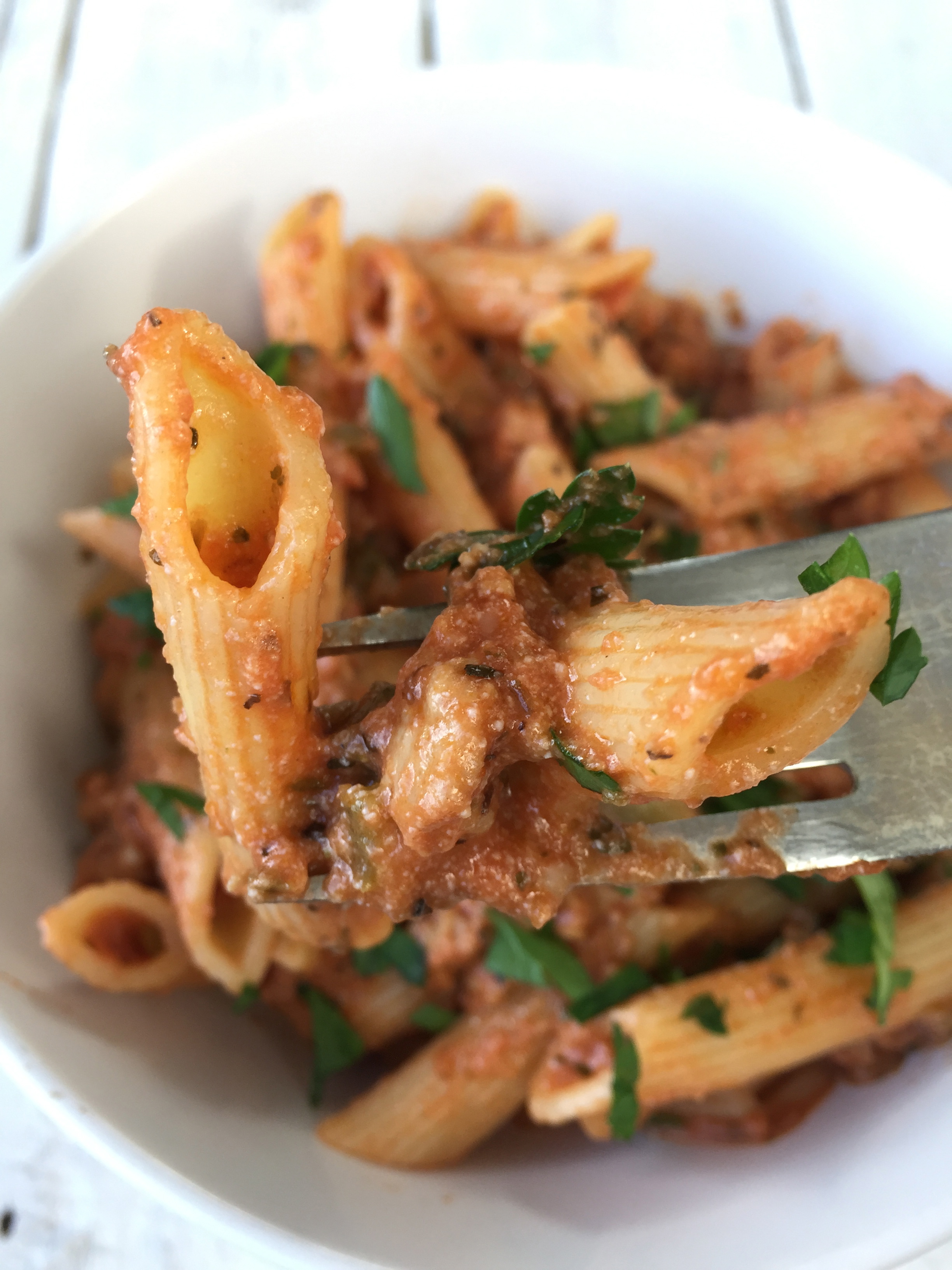 Alright…i’m not gonna lie to you…things be craaaaayzaaaay in my world right now. So much going on that meals have been quick and super easy lately. I’m talking eggs and toast or warming up some sausage rolls and opening a can of beans kinda quick. Not a lot of time or energy for cooking these days but today I had a bit more time so I whipped up a tasty pasta dish that was easy peasy.