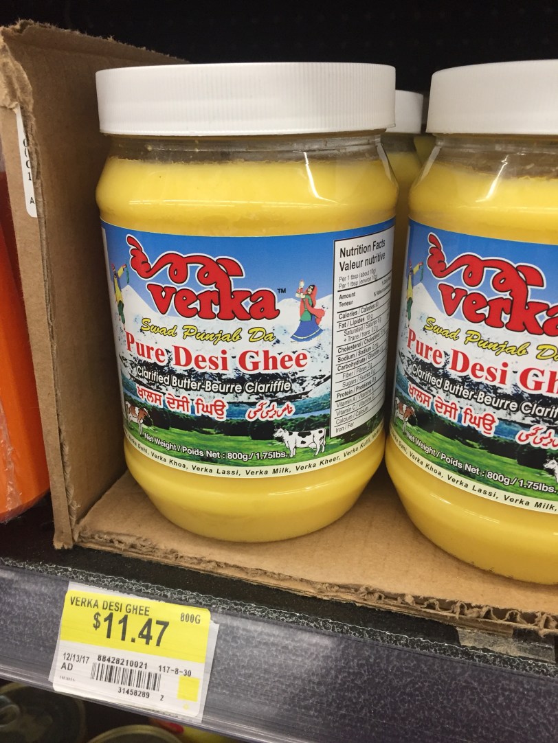 Ghee: Again, if you don’t want to make your own clarified butter, take a whirl down the asian food section at Walmart and you can be sure to find a jar of Ghee. Walmart has multiple varieties of it and various sizes. Ghee is awesome to use in cooking or if you miss those frothy, foamy lattes…blend your coffee with Ghee and Voila Latte!! (I know, I know, it sounds weird but trust me, it works)