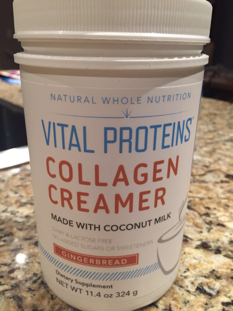 This is a very new product and only came out in October of 2017. I am a huge fan of the vital proteins collagen peptides so I was very eager to try this!! I have been putting a scoop of collagen peptides in my regular brew every morning for over a year and I absolutely love it. Now that it was available as both collagen and creamer together…I thought this is going to be awesome! It is completely non dairy and whole 30 approved. It is a powder form in a container and does not require refrigeration after being opened. It comes in 3 flavours: Coconut, Vanilla and Gingerbread.