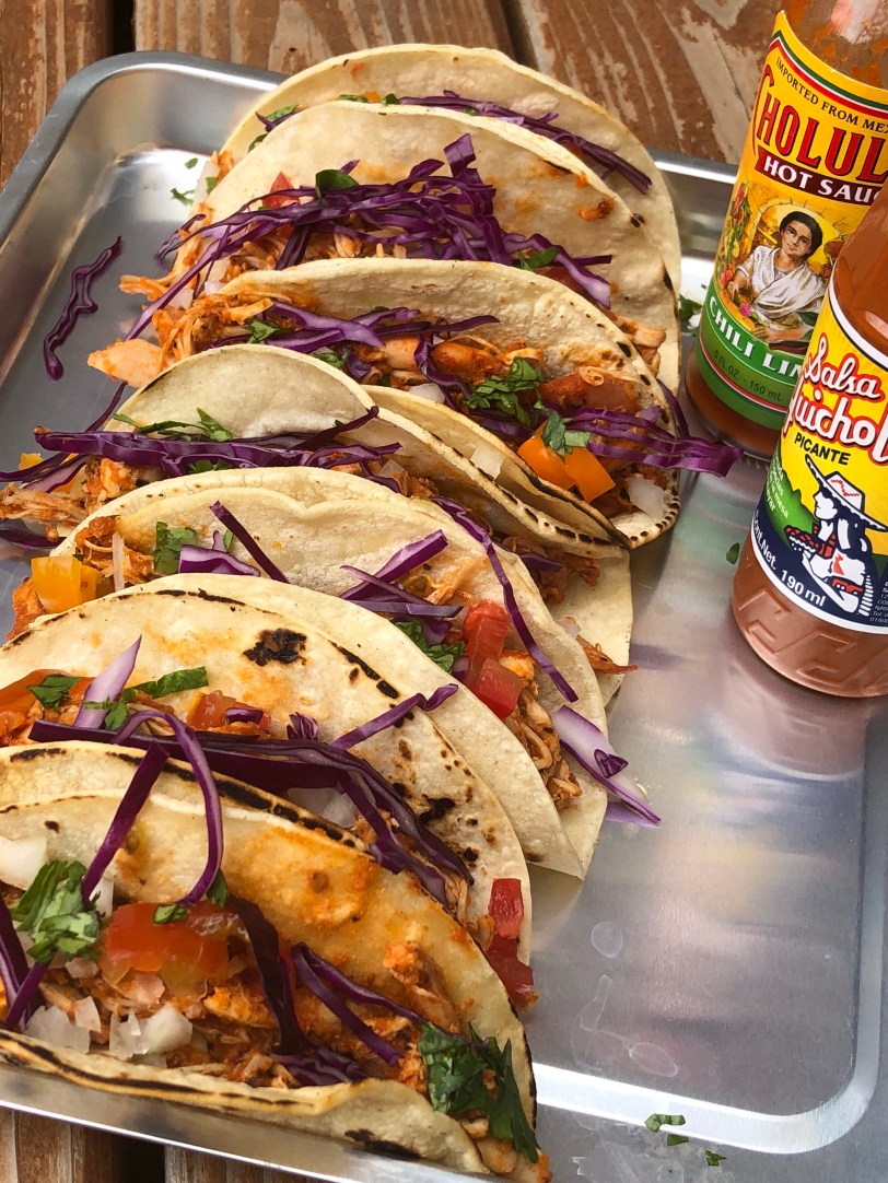 Since I love making whole chickens on my bbq, I often have left overs (on purpose) so I can create something simple during the week when i’m working. On Sunday night, we had some friends over for a BBQ and since i had quite a bit of chicken left over, I decided I wanted to do something for Taco Tuesday using that chicken. I wanted a chicken taco with maximum flavour so I created a Chicken Tinga Taco.
