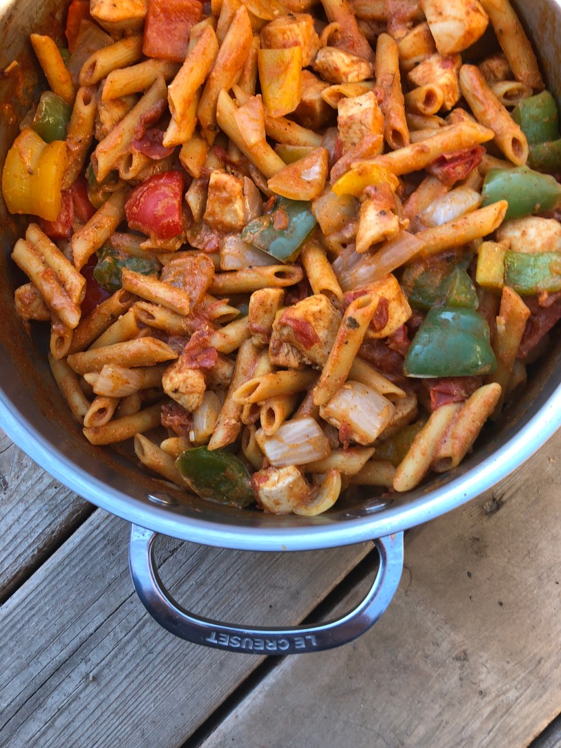 Note to parents: I honestly started making this dish because my son loves tacos and fajitas and this was a way to incorporate more carbs and bulk up a bit. I find he is always still hungry after dinner (you know cuz he loves the DESSERT so it’s his tactic) and I am trying so hard to make sure he gets a balanced meal before the treats begin. I have been finding the pasta is keeping him more full!! Winning.